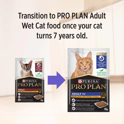 Pro Plan Adult wet cat food is scientifically formulated to be 100% complete and balanced, containing all of the essential nutrition your adult cat needs, including a balance of protein and calories to help maintain a lean body condition and inulin to support superior nutrients absorption. It is made with real chicken in a tasty gravy for a delicious flavour your cat will love.