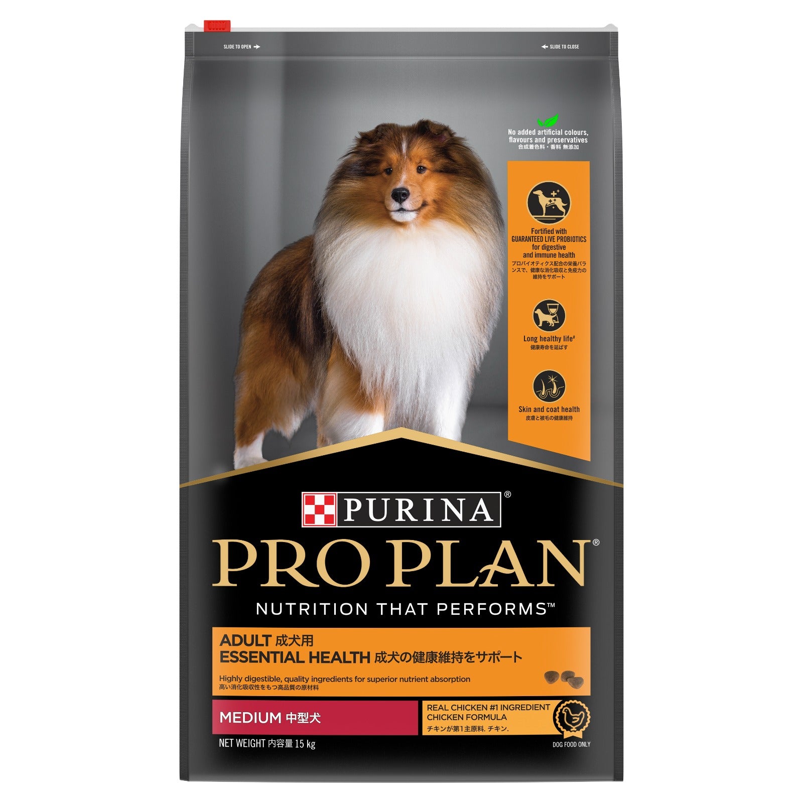 PRO PLAN® Essential Health is a complete and balanced dry dog food for medium size adult dogs. It has been developed by vets and nutritionists at PURINA to give your medium-sized breed dog the best nutrients for their health needs.