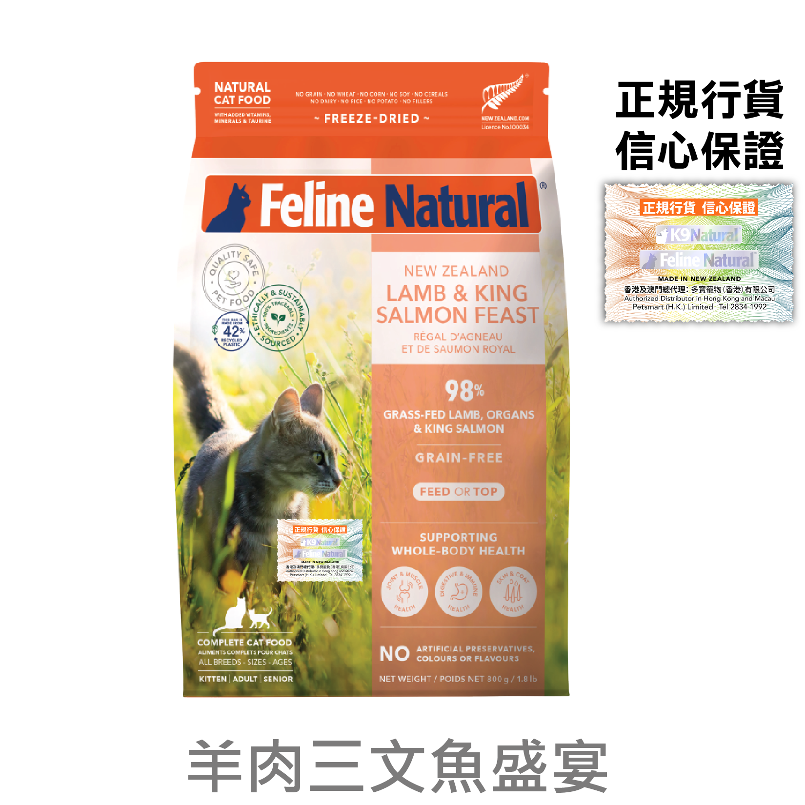 Crafted with wholefood New Zealand ingredients and selected vitamins and minerals, our innovative Freeze-Dried offering provides the best blends of nature in nutrition for your cat. Made in New Zealand with grass-fed, free-range Lamb and sustainably caught King Salmon, this Lamb & King Salmon diet provides the rich proteins and Omega 3 fatty acids to assist a cat's natural anti-inflammatory responses and supports healthy skin, coat and joints.